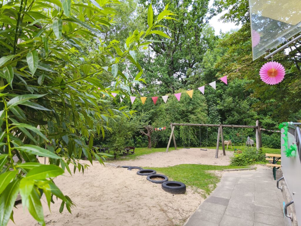 Neben Outdoor-Spielzeug und den verschiedenen Spielanlagen wird hier auch die Natur erkundet: In unserem Garten züchten und pflegen die Kinder Pflanzen und Kräuter, es werden Kastanien gesammelt, Würmer, Schmetterlinge und Eichhörnchen beobachtet und Äpfel und Kürbisse geerntet. Im Laufe der Zeit entwickeln sie so eine besondere Naturverbundenheit.