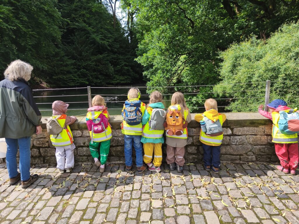 Vorbereitung auf die Schule: Für die Kinder im letzten Jahr vor der Schule bieten wir 1x/ Woche die Schulkindergruppe an. In dieser Kleingruppe lernen wir unter anderem Buchstaben und Zahlen in verschiedenen Zusammenhängen kennen, machen Ausflüge zur Feuerwehr, ins Naturkundemuseum, zur Sparrenburg usw., treffen uns mit den Schulkindern unserer Kooperationskita im Stadtteil, hospitieren in der Schule, üben uns im Straßenverkehr und machen einen Verkehrsspaziergang mit der Polizei, besuchen die Polizeipuppenbühne und vieles mehr….