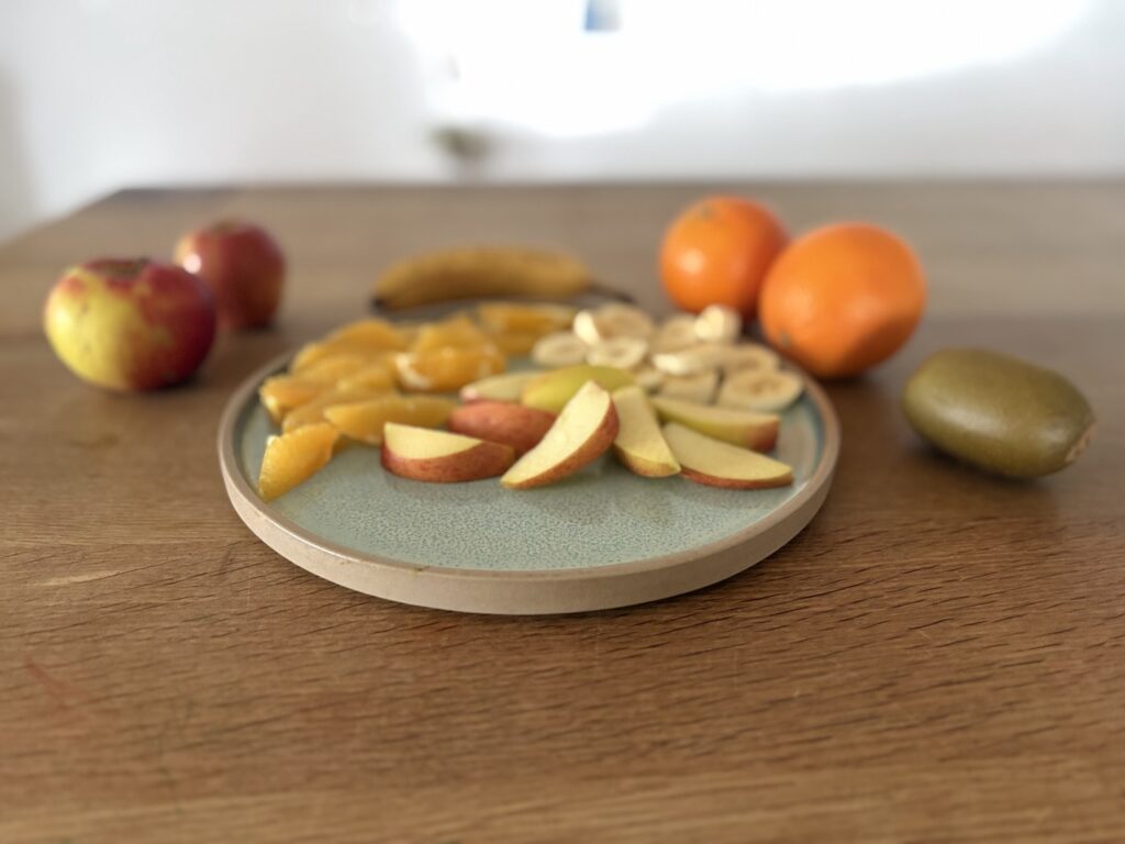 Snackrunde: Nachmittags gibt es eine Obstrunde – dafür bringen die Familien, deren Kinder so lange bleiben ein Obst, Gemüse oder Rohkost mit.